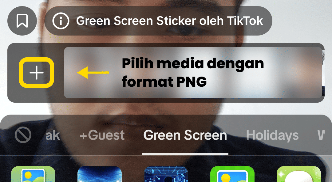 Pilih jenis effect dan pilih filter gulir ke kanan sampai menemukan filter "Green screen". jika sudah pilih effect image place holder atau sesuaikan icon gambar pada gambar di bawah.